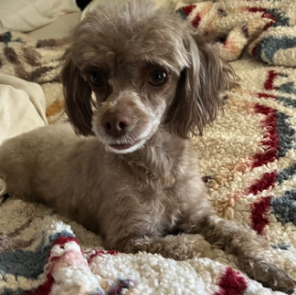 She loves to be snuggled, and will be in your arms and lap any chance she is given. She will lay at your feet if your busy at your computer, or watching a movie. While she loves to be close, she will also happily lay on a dog bed near by napping or playing with a favorite toy if you are tending to other things around the home and will occasionally check on you to make sure you haven't steered to far away 😂