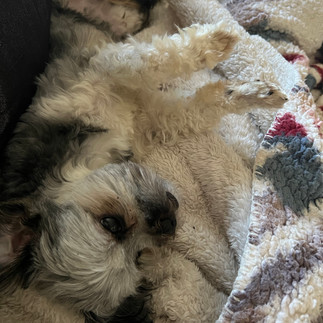 She is pad trained; and when we take her outside to potty she is always accompanied due to the wildlife in the area. She won't have an issue doing one or the other in her next home pending her new owners preference. She is very easy going; and aims to please. She wants to make her person happy, and in turn will make you happy she is yours! She loves loves loves to be in bed with her person at night, so if you enjoy having a bed buddy at night she would absolutely love that too! She loves laying on her back with all paws up, or will lay right next to you curled up in your arms. She is truly one of the sweetest dogs and one I'm going to miss immensely but it's her time to find her happy ending and I'm happy to be the one to find it!